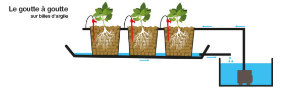 - Aéroponie : les racines sont à l’air libre et simplement « brumisées » d’eau enrichie.
